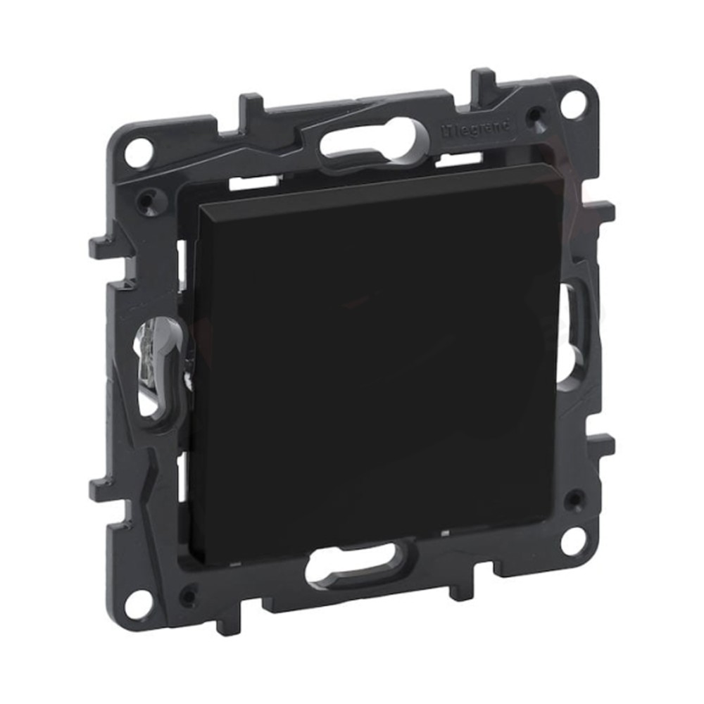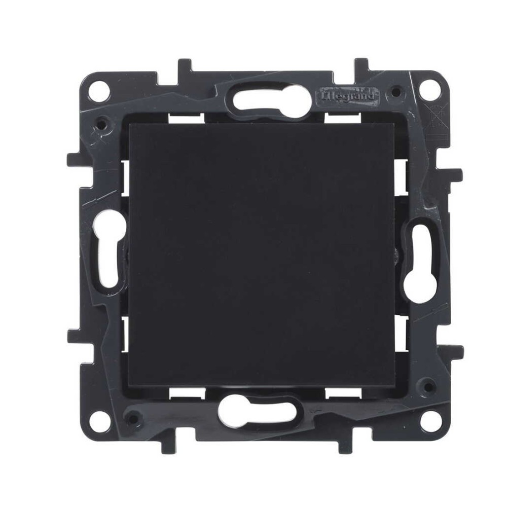 Legrand Niloe Step 863506 - это одноклавишный проходной выключатель (переключатель) в матовом черном цвете. Модель предназначена для скрытого монтажа и позволяет управлять освещением из одной или двух точек (в паре с аналогичным устройством).