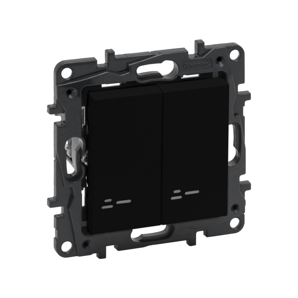 Legrand Niloe Step 863515 - это двухклавишный выключатель с подсветкой в матовом черном цвете. Выключатель двухклавишный Niloe Step предназначен для управления двумя осветительными приборами из одного места. Он рассчитан на ток до 10А и оснащён подсветкой, что делает его удобным в использовании в тёмное время суток. Выполненный в элегантном чёрном цвете, выключатель придаёт современный и стильный внешний вид, идеально подходящий для любого интерьера. Выключатель изготовлен из высококачественного материала, что гарантирует его долговечность и устойчивость к механическим повреждениям. Автоматические клеммы обеспечивают быстрое и безопасное подключение проводов.