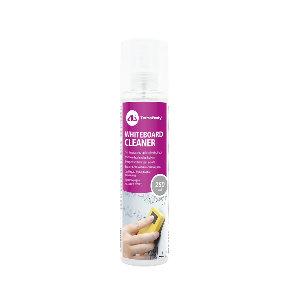 Жидкость для досок. Средство быстро и эффективно очищает даже самые твердые загрязнения с поверхности досок. Удаляет следы от маркеров, полосы и изменения цвета вызванные длительным использованием доски 250 мл.